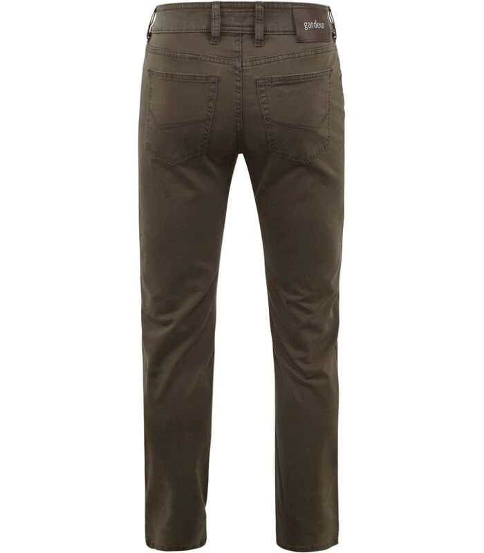 Met dit Bill model van Gardeur haal je een comfortabele broek met een modische uitstraling in huis. De herenbroek heeft een Modern–Fit pasvorm heeft toelopende broekspijpen en valt licht getailleerd om je benen. De broek is voorzien van twee steekzakken, een muntzakje en twee zakken op de achterzijde. De broek is gemaakt van biologisch katoen, lyocell en elasthaan, waardoor de broek zacht aanvoelt, comfortabel draagt, een natuurlijke stretch krijgt en ook nog eens duurzaam is. Donkergroene kleur Licht getailleerde Modern–Fit pasvormGemaakt van 77% katoen, 20% lyocell en 3% stretch