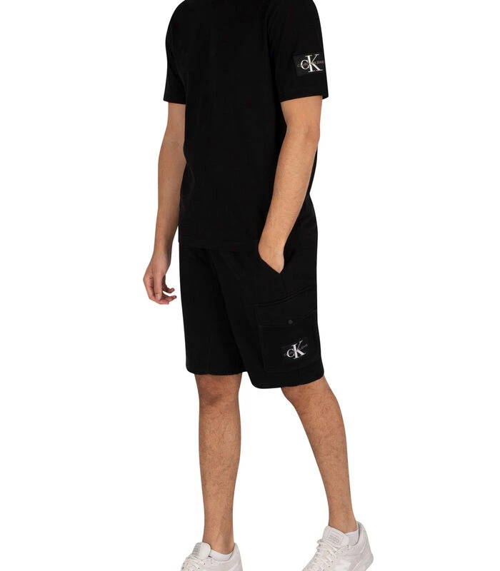 Het Monogram Sleeve Badge T–shirt van Calvin Klein Jeans is uitgevoerd in de kleur zwart en heeft een geborduurd logobadge op de mouw. Dit T–shirt met rechte zoom en biologisch katoen heeft een ronde hals en korte mouwen.
