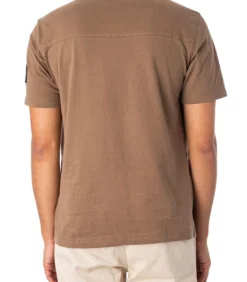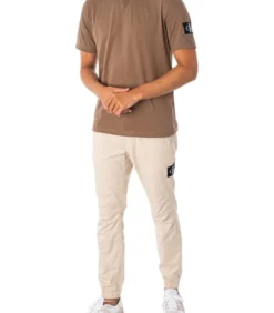 Het Monologo Sleeve Badge T–Shirt van Calvin Klein Jeans wordt geleverd in Shitake–kleur, met een geborduurd logolabel op de mouw. Dit T–shirt heeft een rechte zoom, korte mouwen en een ronde hals. Dit t–shirt is gemaakt van minimaal 50% Transitional katoen.