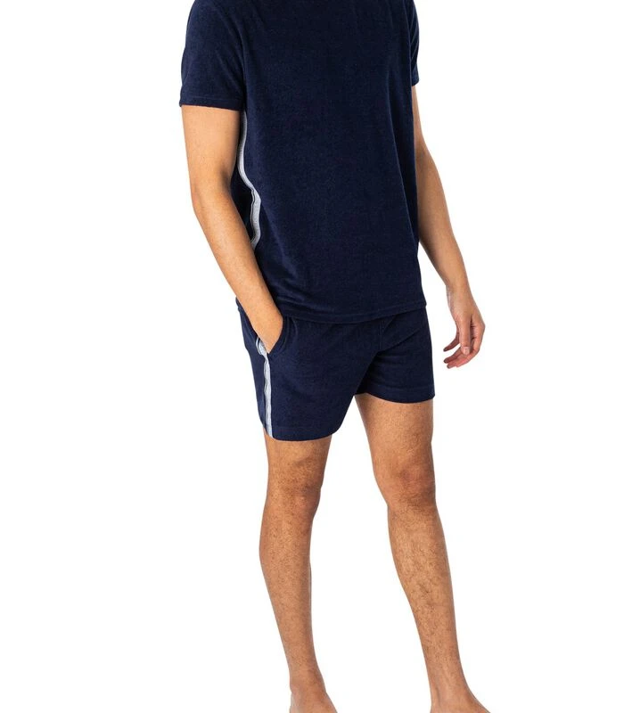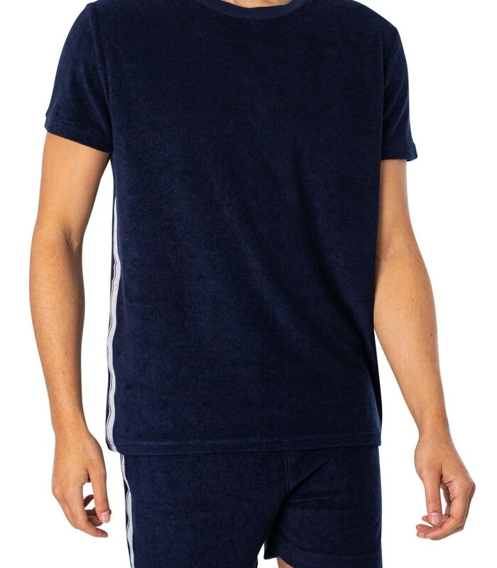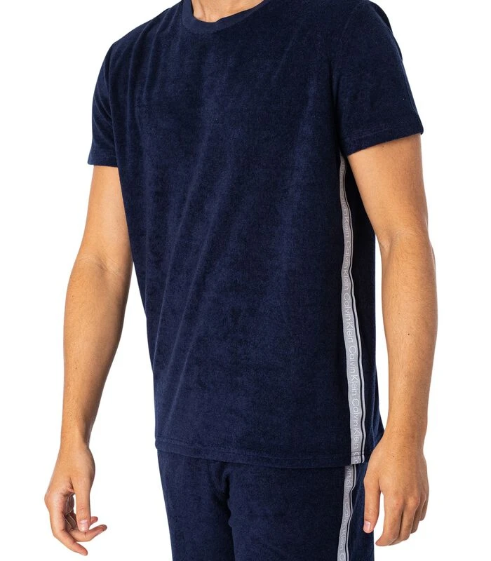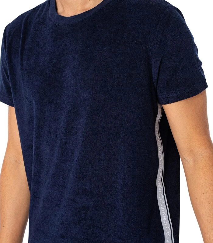 Het Toweling T–Shirt van Calvin Klein heeft een rechte zoom, korte mouwen en een ronde hals. Dit t–shirt komt uit de swimwear serie. Dit T–shirt is uitgevoerd in de kleur Navy Iris en heeft branding op de zijkanten.