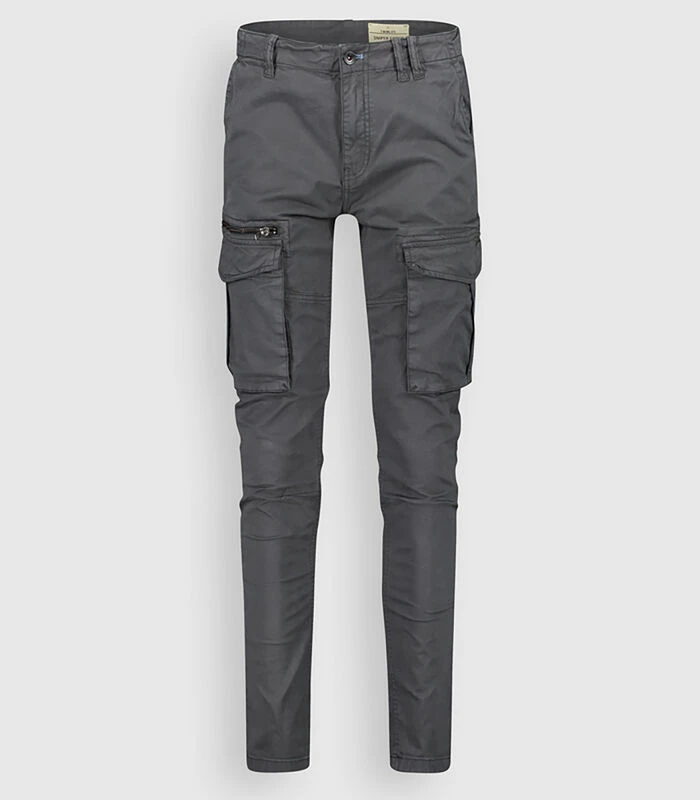 Deze stoere cargo broek is gemaakt van 97% katoen en 3% elastan waardoor het een comfortable pasvorm krijgt. De broek heeft 2 grote zakken op de bovenbenen en een extra rits. Het model is slank gesneden.