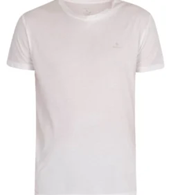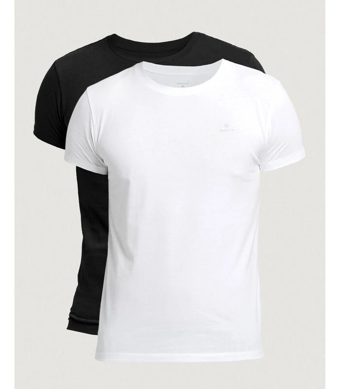 De twee basic T–shirts in deze set zijn volledig gemaakt van katoen en hebben korte mouwen, een ronde hals en een GANT –logo op de borst. Ze passen in de garderobe van elke man. Materiaal: 100% katoen