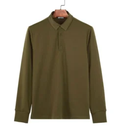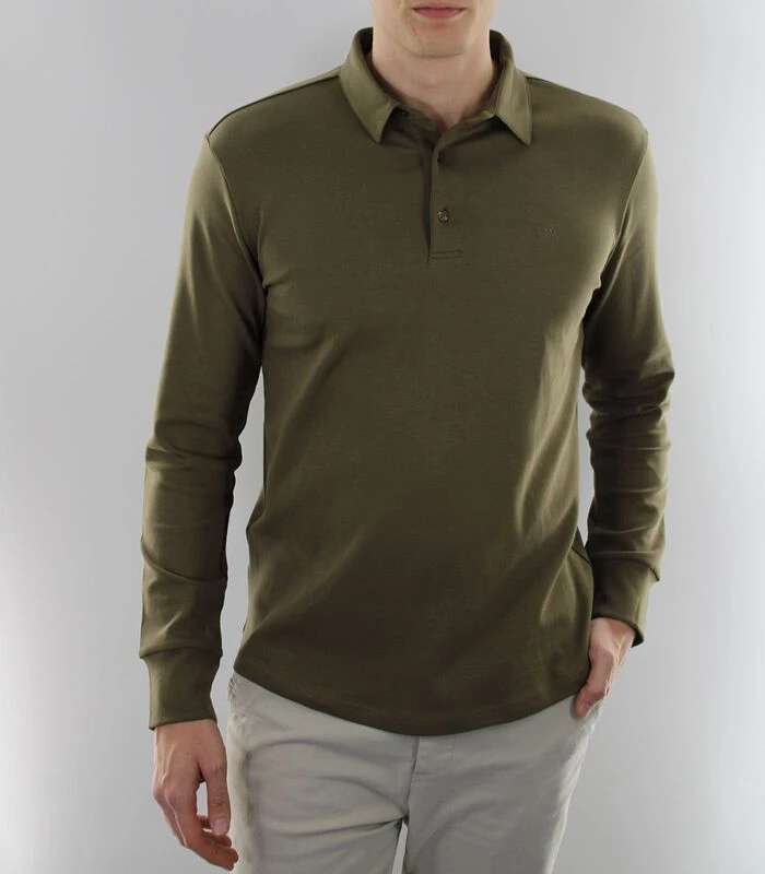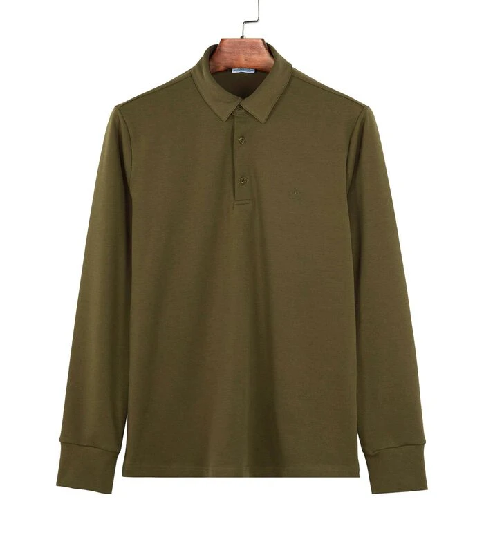 Heren Polo Lange Mouw – Strijkvrij Poloshirt – Groen Bruin – Olive – Slim Fit