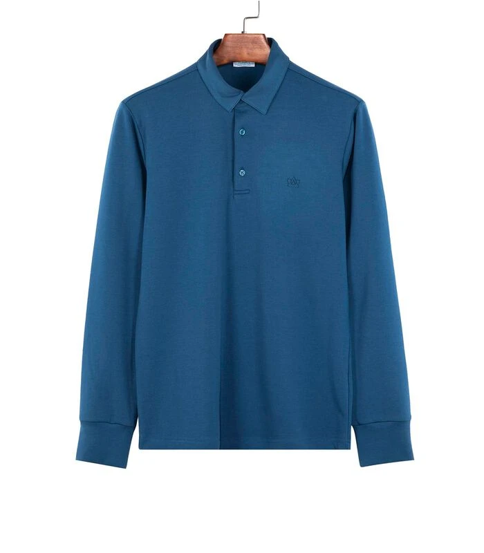 Heren Polo Lange Mouw – Strijkvrij Poloshirt – Royal Blue – Blauw – Slim Fit – Premium Katoen