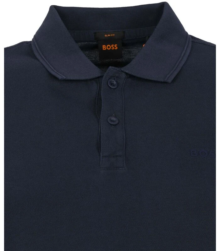 Hugo Boss PoloIn een stijlvolle donkerblauwe kleurGetailleerde Slim–Fit pasvormGemaakt van 100% katoenKraag gemaakt van 100% katoen