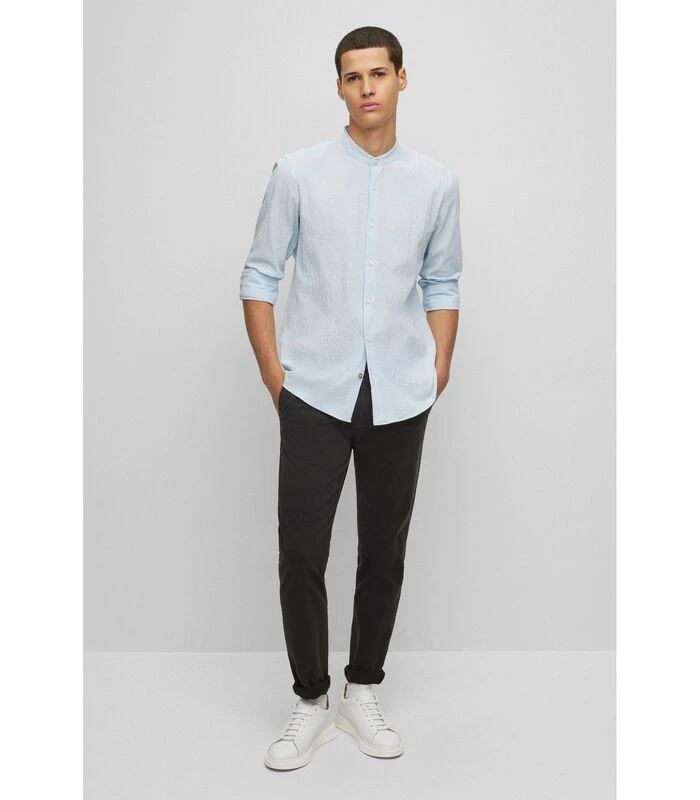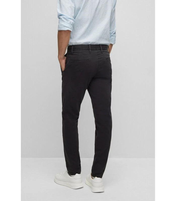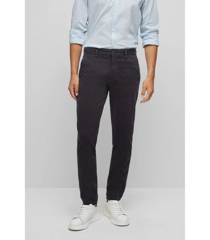 De collectie van Hugo Boss staat bekend om zijn hoogwaardige kwaliteit, nauwkeurige designs en vakmanschap in elk product. Deze Chino broek heeft een slanke pasvorm en is voorzien van twee steekzakken aan de voorzijde, ritssluiting en achterzakken. De chino is gemaakt van katoen en elastaan (stretch). Hierdoor draagt de herenbroek erg comfortabel en voorziet hij je outfit van een kenmerkende touch.Zwarte kleurGetailleerde Slim–Fit pasvormGemaakt van 97% en 3% stretch