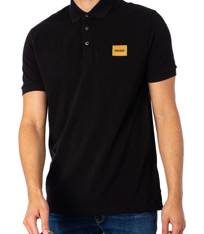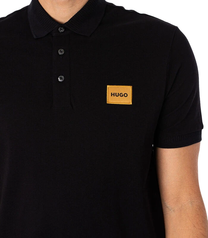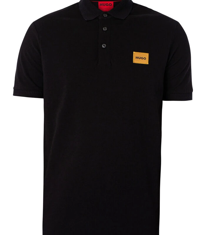Het Dereso Slim–poloshirt van HUGO is verkrijgbaar in de kleur zwart en heeft een logo op de borst. Deze polo heeft een knoopsluiting met drie knopen en knopen met merklogo, korte elastische mouwen en een slanke pasvorm.