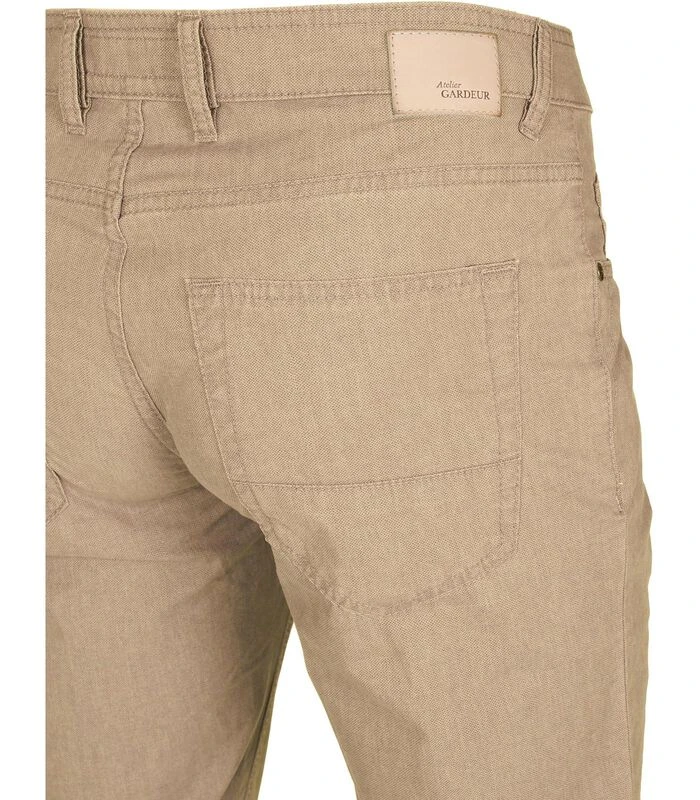 De broek van Gardeur in de lichtbruine kleur. De herenbroek is uitgevoerd in een 5–pocket model waarvan twee steekzakken, een muntzakje en twee achterzakken.Combineer deze Gardeur broek bijvoorbeeld met een wit overhemd, een chic colbert en leren schoenen. Prachtig! De herenbroek is gemaakt van katoen en elastaan (stretch) waardoor het zeer comfortabel draagt. De modern–fit zorgt voor een rechte en comfortabele pasvorm, met licht toelopende pijpen.Kleur: CamelPasvorm: Modern–Fit met licht toelopende pijpenMateriaal: 97% katoen en 3% elasthaanTrendy herenbroek met 5–pocket design