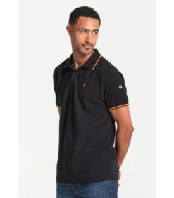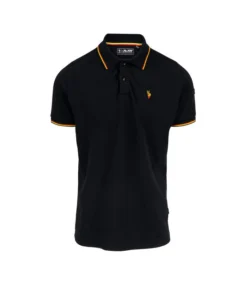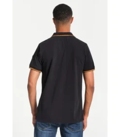 Soberheid en sportieve geest voor dit zwarte poloshirt met korte mouwen. De snit is recht. De kraag en de bodem van de mouwen zijn geribbeld en hebben een zwarte, gele, rode rand. Wist je dat de zwarte kleur van de Belgische vlag de kracht vertegenwoordigt? Deze kleuren inspireerden onze stylisten om deze collectie gewijd aan voetbal te maken.
