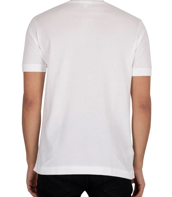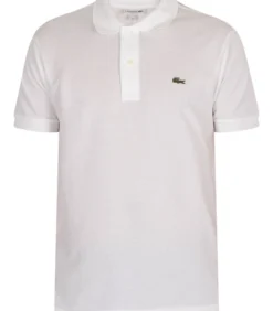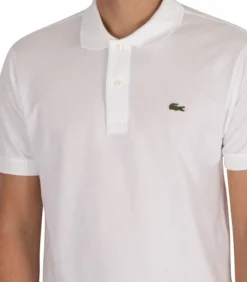 Het klassieke logo–poloshirt van Lacoste heeft een sluiting met drie knopen en korte elastische mouwen, een rechte zoom en een klassieke pasvorm. Deze polo is verkrijgbaar in de kleur wit en heeft een geborduurd krokodillenlogo op de borst.