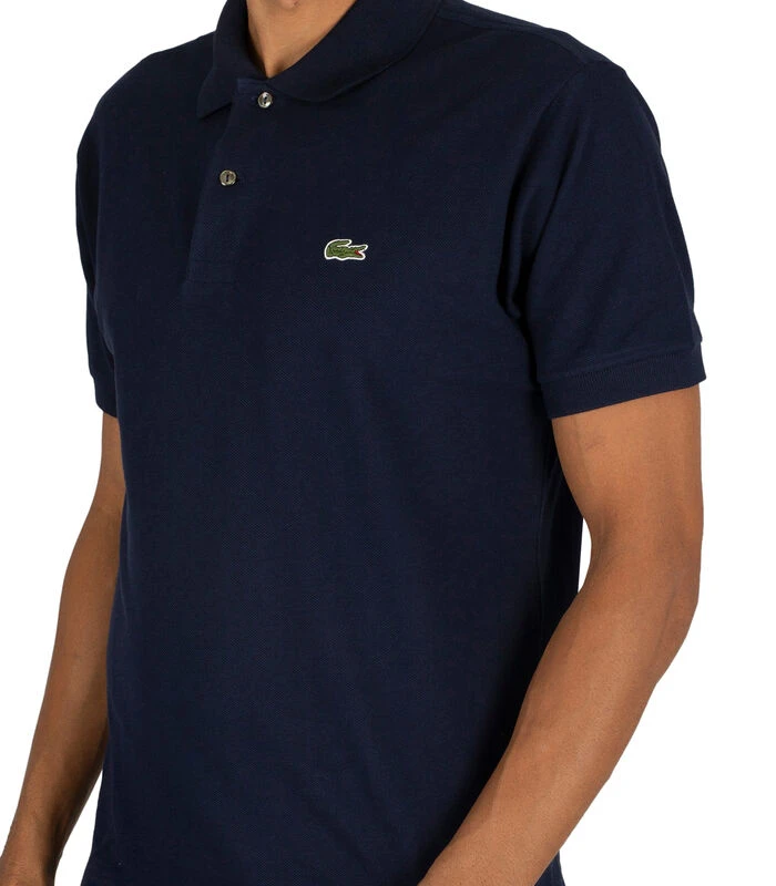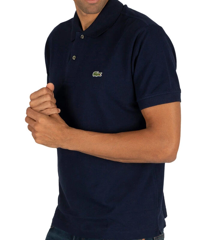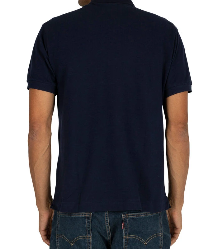 Van Lacoste komt de Logo Poloshirt in marine kleur, met een normale pasvorm en een geborduurd logo op de borst. Met een knoop met twee knopen en een rechte zoom, pronkt dit poloshirt voor heren met een gespreide kraag en korte elastische mouwen.