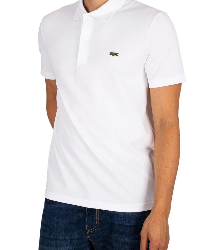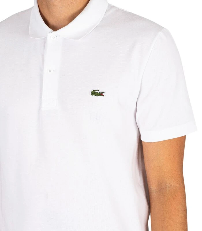 Het Logo–poloshirt van Lacoste heeft korte elastische mouwen en een knoopsluiting met twee knopen, een rechte zoom en een normale pasvorm. Deze polo is gemaakt van biologisch katoen en gerecycled polyester. Deze polo is uitgevoerd in de kleur wit en heeft een geborduurd logo op de borst.