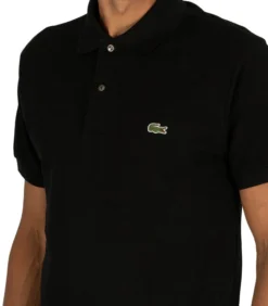 Van Lacoste komt de Poloshirt in zwarte kleur, met een geborduurd logo op de borst. Met een knoop met twee knopen en een rechte zoom, pronkt dit poloshirt voor heren met een gespreide kraag en korte elastische mouwen.