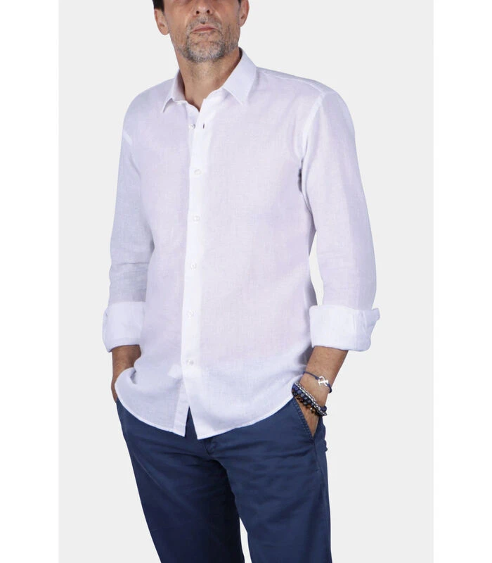 Overhemd Linnen Franse Kraag Effen Patroon