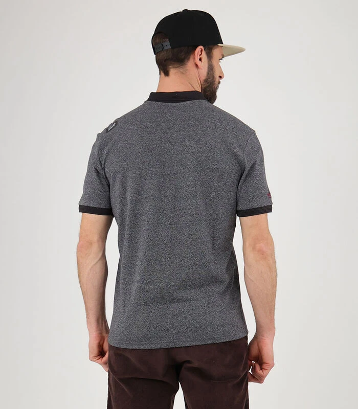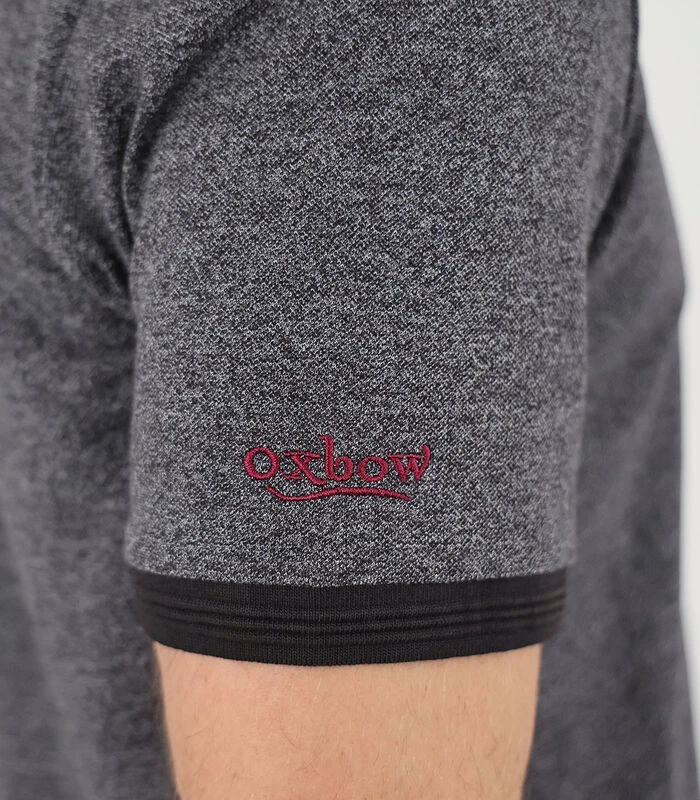 Hals en mouwen afgewerkt met ribboorden, reliëfeffect.