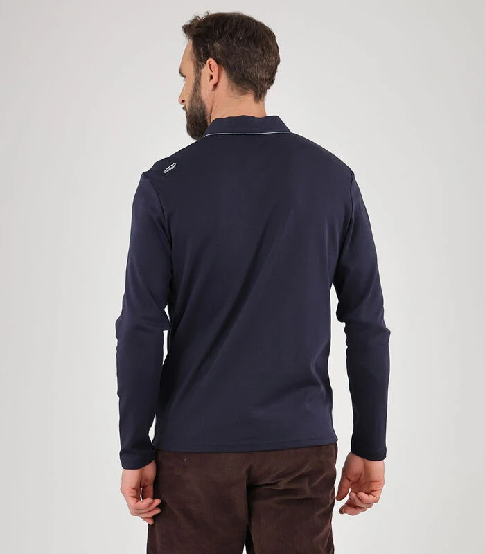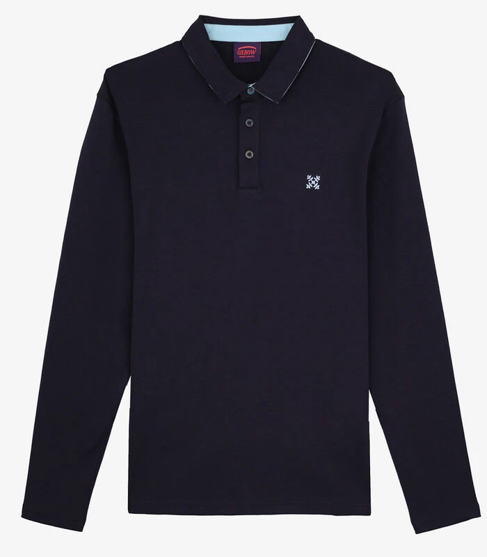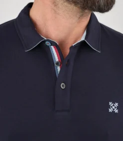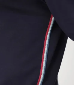 Contrasterende stroken op de zijkanten en onder de knoopsluiting.