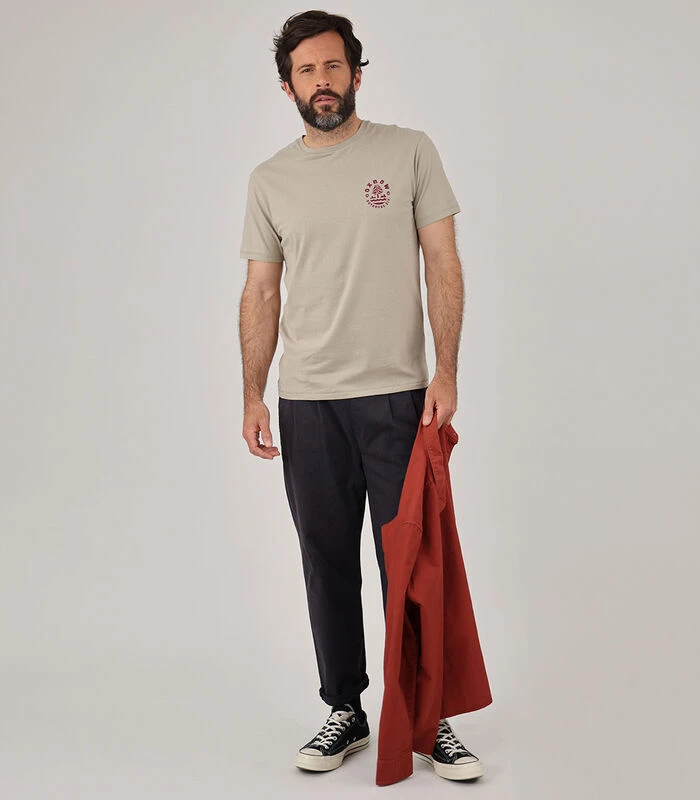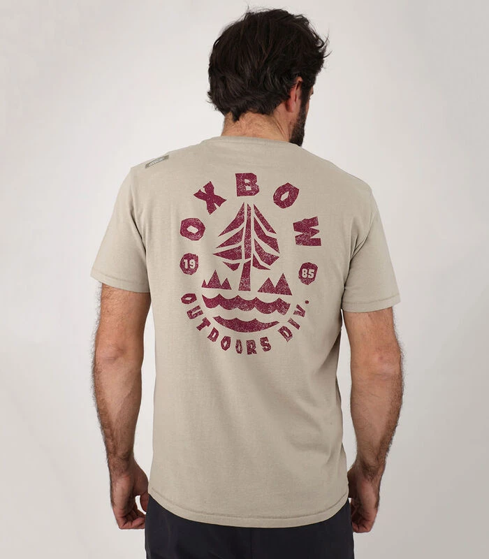 Print in 1 kleur op de rug, kleine print op de borst.