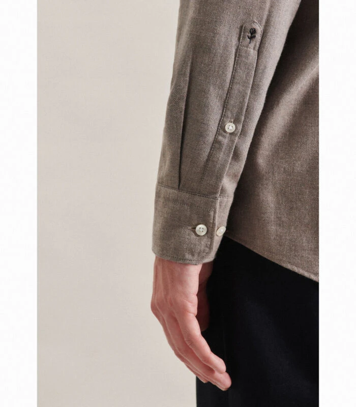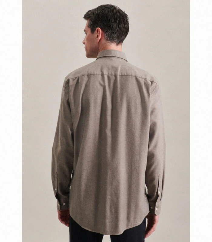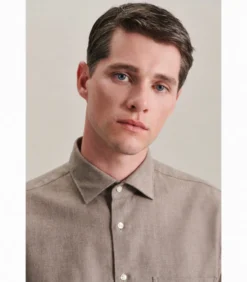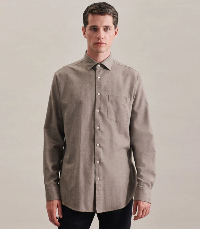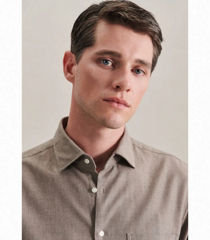 Strakke moderniteit met formele en informele details kenmerkt de shirts van Seidensticker. Dit uitgangspunt geldt voor de hele herencollectie van Seidensticker en is merkbaar in alle stijlen, kwaliteiten en pasvormen. De man laat dit zien in zijn ontspannen houding en zijn eigentijdse omgang met mode en stijl. De maat Regular biedt een klassieke rechte snit met kleinere hemdmaten. Extra speelruimte wordt gecreëerd door twee zijvouwen.