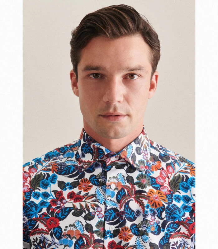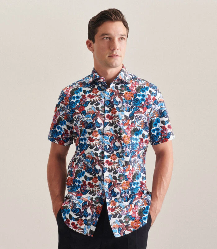 Seidensticker Business Overhemd Shaped Fit Korte Mouwen Print
