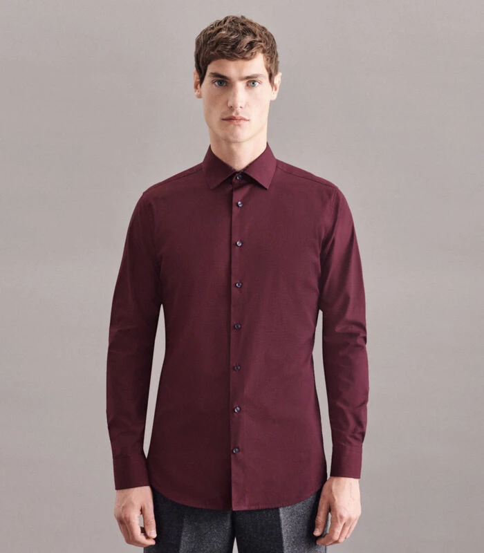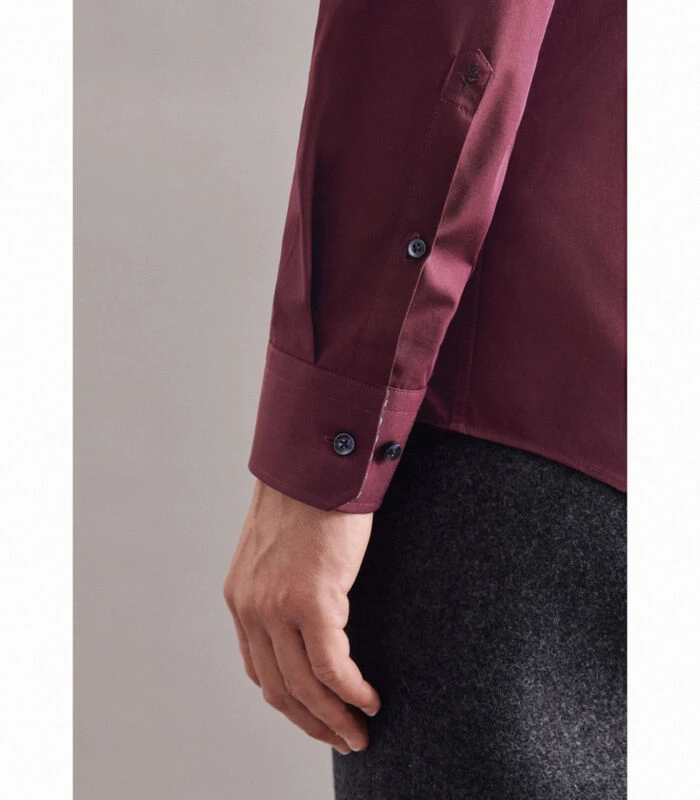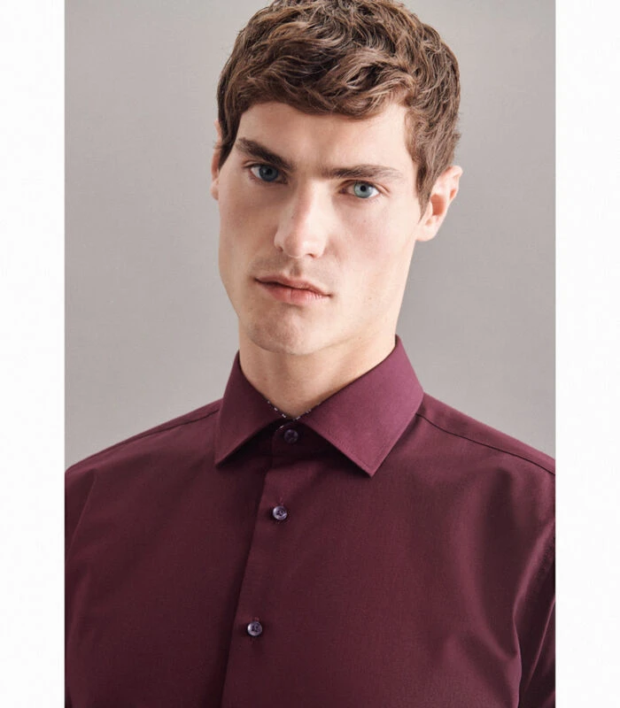 Slimme moderniteit met formele en casual aspecten kenmerkt de shirts van Seidensticker. De basishouding doordringt de gehele Seidensticker Men collectie en is voelbaar in alle stijlen, kwaliteiten en pasvormen. De man weerspiegelt dit in zijn ontspannen houding en zijn eigentijdse benadering van mode en stijl. De pasvorm X–Slim heeft een silhouet dicht bij het lichaam en onderstreept de stijl van de sportieve man. Twee pijltjes achteraan op de rug.