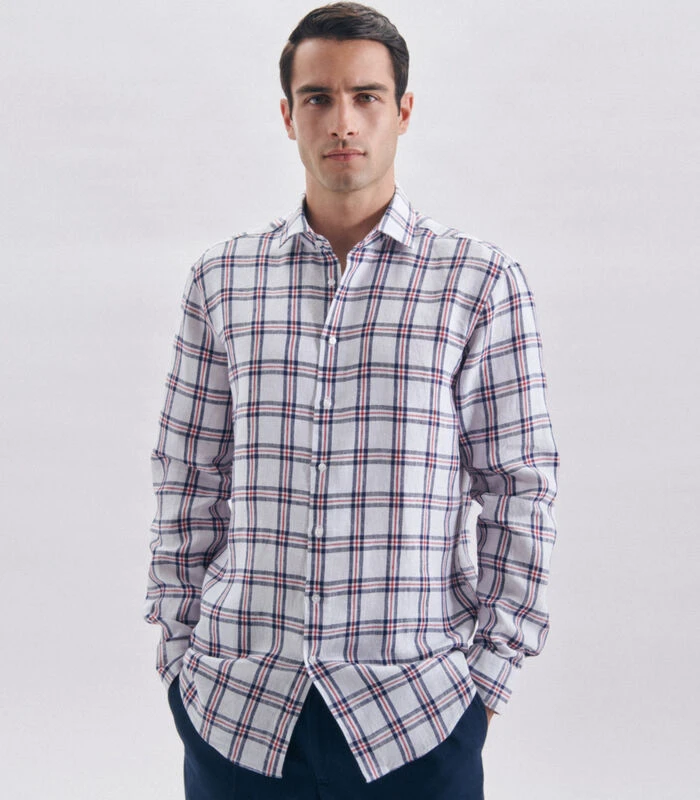 Seidensticker Linnen Hemd Regular Fit Lange Mouwen Geruit