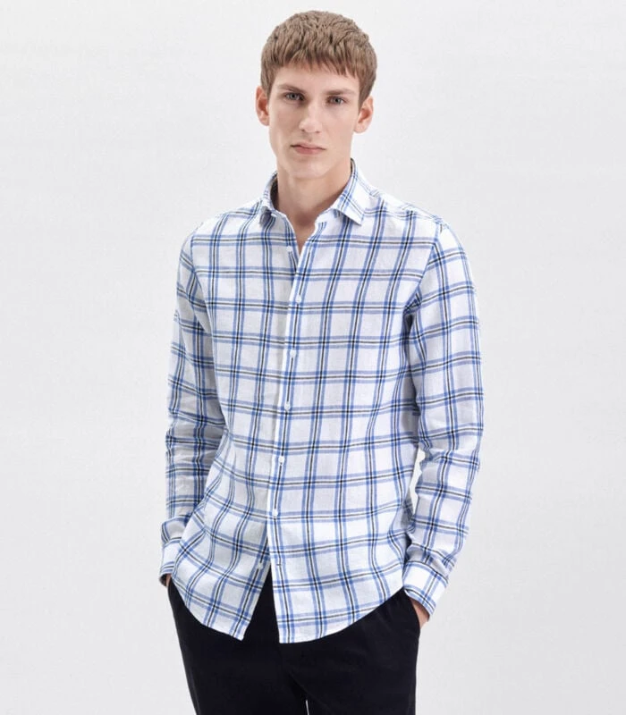 Seidensticker Linnen Hemd Shaped Fit Lange Mouwen Geruit