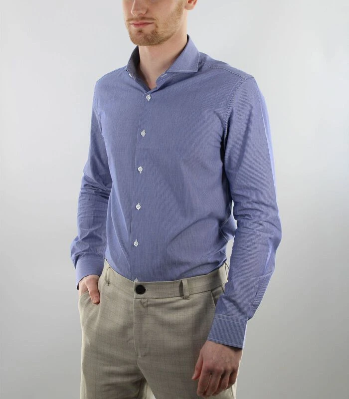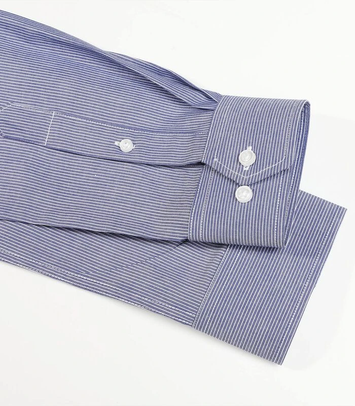 Strijkvrij Overhemd – Donkerblauw Gestreept – Slim Fit – Poplin Katoen – Lange Mouw – Heren