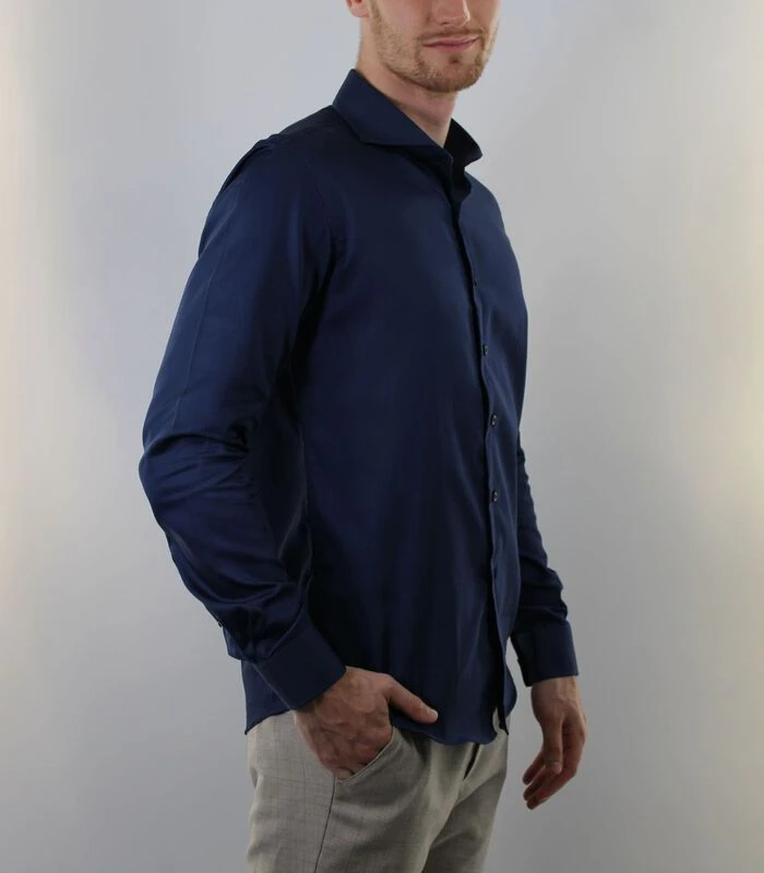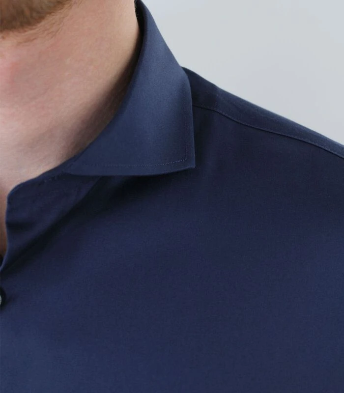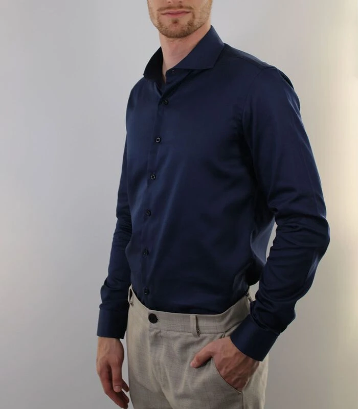 Strijkvrij Overhemd – Navy – Slim Fit – Katoen Satijn – Heren