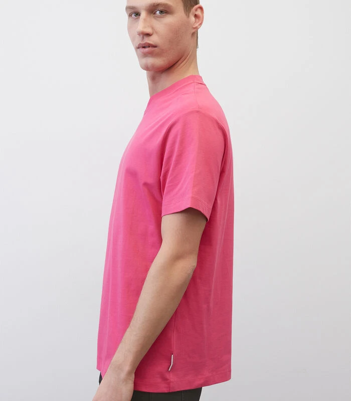 Overtuigt door hoogwaardig materiaal en een opvallende kleur: casual T–shirt met een relaxte fit. Het shirt is gemaakt van zachte single jersey van zuiver biologisch katoen en heeft een kleine, subtiele logoprint midden op de borst. Met klassieke, geribde ronde hals, korte mouwen, enigszins oversized schouders en een rechte zoom. Valt groot uit – wij adviseren u een maat kleiner te bestellen.